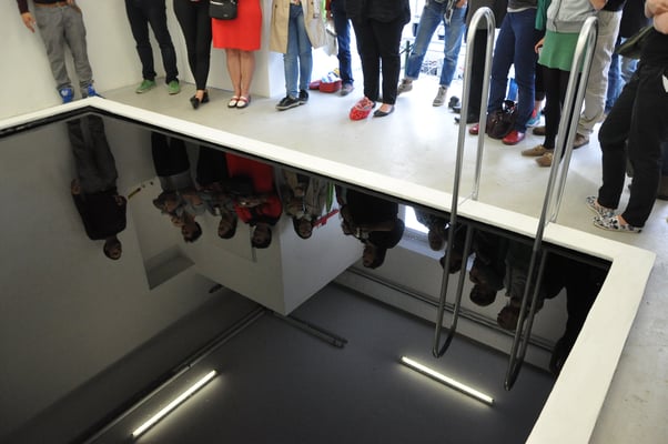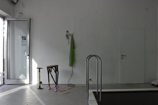 Das Schwimmbecken wird neuer dominierender Schwerpunkt des Raumes. Durch Kupferrohre lässt sich Flüssigkeit in das Becken pumpen. Der Einstieg ins Becken ist ein