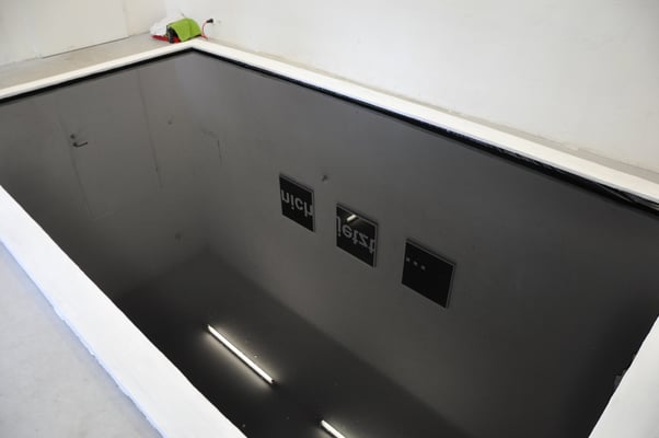 Swimmingpool, wie man ihn gerne benutzen würde . Die Installation ist die letzte Arbeit einer Serie von verschiedenen Experimenten mit Flüssigkeiten,
