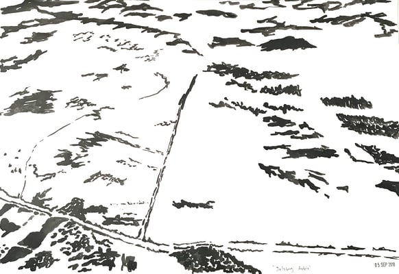 Grenzbefestigung ist ein Begriff, der Mauern, Zäune und andere Barrieren beschreibt, die gebaut wurden, um Personen in oder außerhalb eines bestimmten Gebiets zu halten. Ein Merkmal einiger Grenzbefestigungen ist eine „trace road“, ein Pfad entlang einer Grenze, der Fußabdrücke sichtbar machen soll. Anstatt den normalen Zweck eines Wegs zu erfüllen, zeigt das feine, sandige Material, ob jemand es überquert hat. Die Ausstellung Trace Path der in Berlin lebenden Künstlerin Kika Jonsson (USA) erweitert dieses Konzept anhand von großformatigen Zeichnungen und Konstruktionselementen und untersucht, wie wir Grenzen definieren.