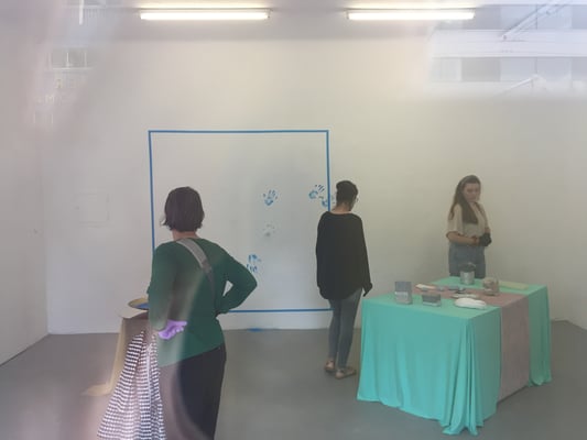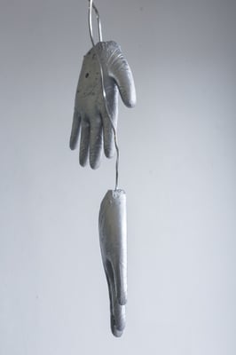 berührt werden? Der Abdruck der eigenen Hand in Einweghandschuhen manifestiert die eigene Existenz und Bedeutungslosigkeit.