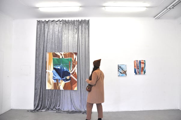 Die Gemeinschaftspräsentation Tableau Vivant drapiert drei malerische Positionen zueinander. Die Ausstellung changiert zwischen Engagement in expressiver und